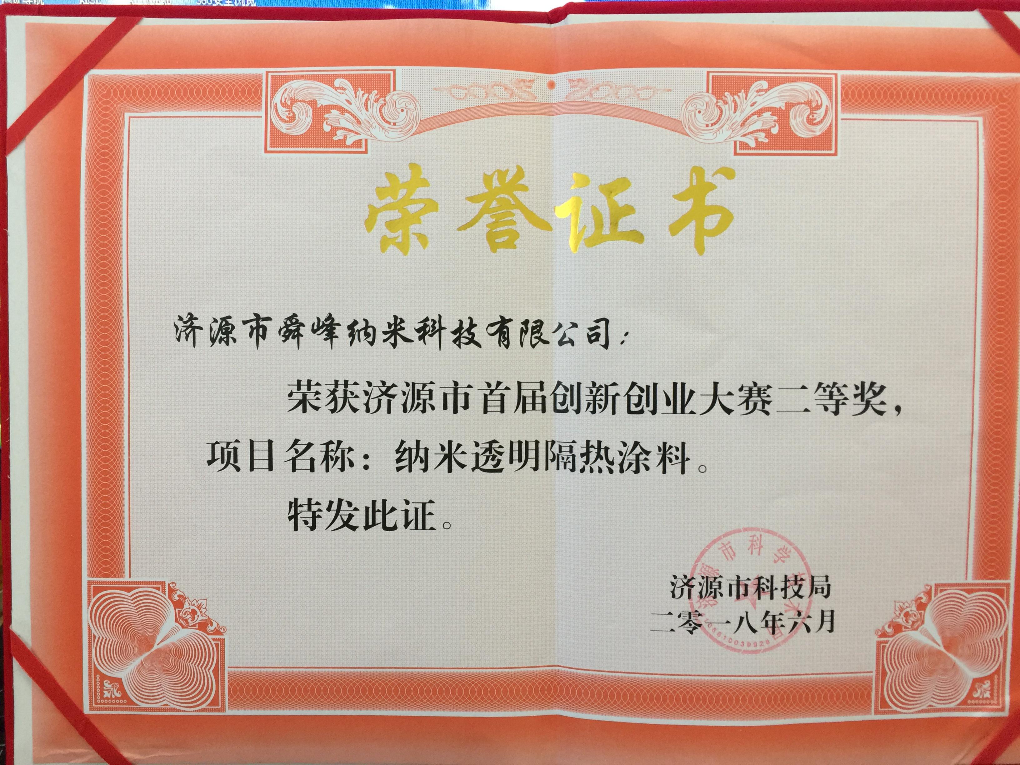 濟源市首屆創(chuàng)新創(chuàng)業(yè)大賽二等獎